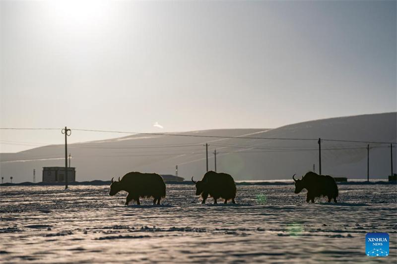Esta foto tomada el 5 de noviembre de 2023 muestra unos yaks en un pastizal del distrito de Damxung, en la región autónoma de Xizang (Tíbet), en el suroeste de China.