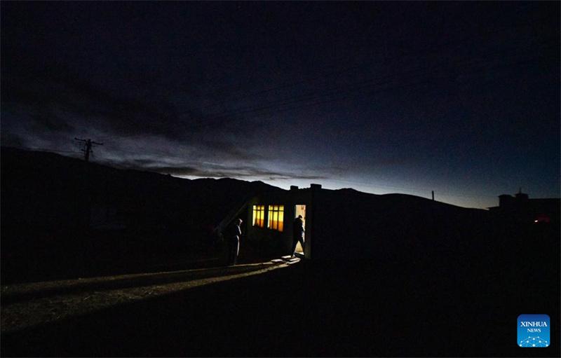 Esta foto tomada el 10 de noviembre de 2023 muestra un pasto de invierno por la noche en la aldea de Dabug del distrito de Damxung, en la región autónoma de Xizang, en el suroeste de China. (Xinhua/Jigme Dorje)