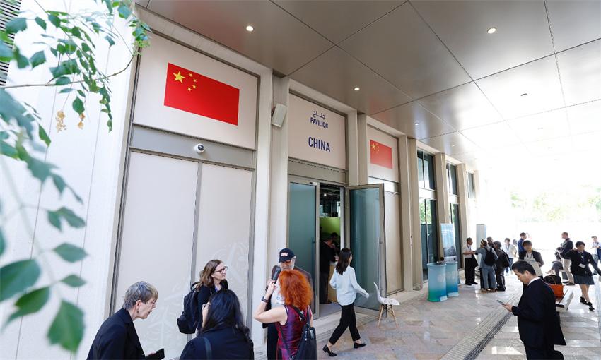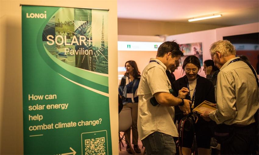 El Pabellón de China, inaugurado el 30 de noviembre por el equipo chino y la Federación del Medio Ambiente de la Gran China, en colaboración con LONGi Green Energy, una firma de energía solar, instaló la Sala Solar+ en la Zona Azul de la COP28.