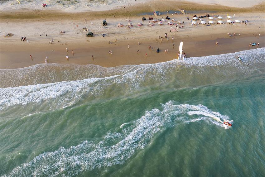 Turistas surcan en mar en lanchas motoras en la bahía de Qingshui en Lingshui, provincia de Hainan, el 4 de diciembre de 2023. [Foto/VCG.]