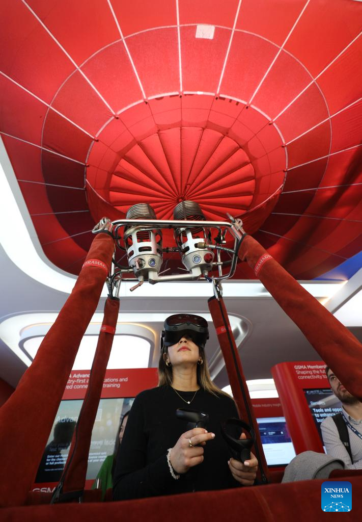 Una mujer prueba un casco de realidad virtual en el Congreso Mundial de Móviles 2025, en Barcelona, España, el 6 de marzo de 2025. En el Congreso Mundial de Móviles 2025 (MWC, por sus siglas en inglés) en la ciudad costera de Barcelona, en el noreste de España, la IA se ha establecido firmemente como un componente central de la industria de la telefonía móvil y las telecomunicaciones. (Xinhua/Zhao Dingzhe)