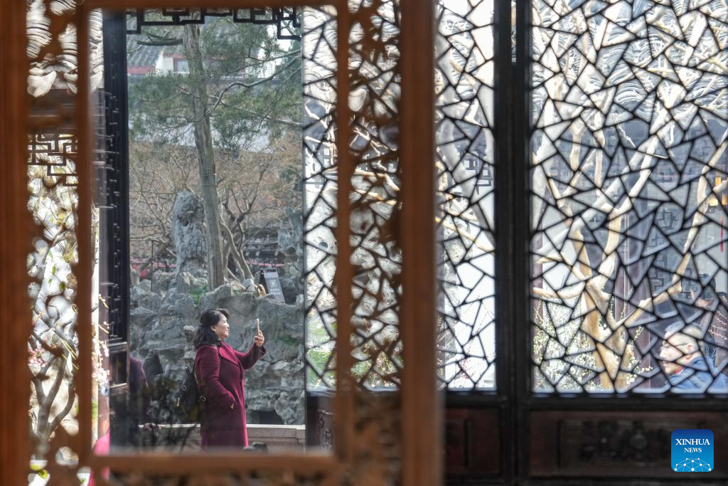 Imagen del 26 de febrero de 2025 de una turista visitando el Jardín del Bosque de los Leones, en Suzhou, en la provincia de Jiangsu, en el este de China. Suzhou es conocida como una ciudad de jardines, con numerosos jardines clásicos considerados entre los más bellos del país y nueve de ellos declarados Patrimonio de la Humanidad por la UNESCO. A lo largo de la historia, el diseño de jardines siempre ha estado entrelazado con la literatura china y el arte de la pintura de paisajes. La protección y restauración de la ciudad antigua y los jardines clásicos de Suzhou se han llevado a cabo durante décadas. La altura de los edificios de la ciudad antigua se mantiene por debajo de los 24 metros para preservar el horizonte histórico. También se han protegido de forma eficaz cientos de edificios antiguos y jardines clásicos. (Xinhua/Li Bo)