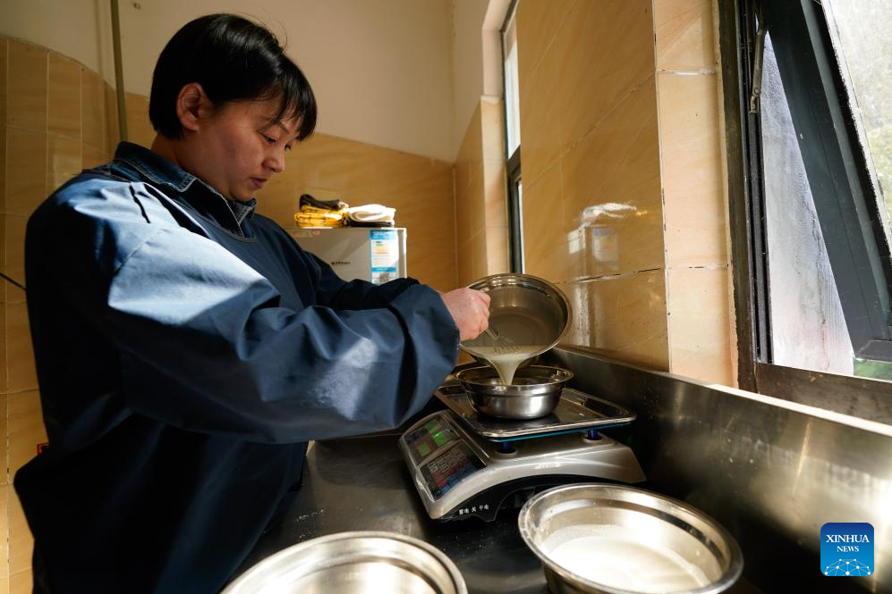 La cuidadora de pandas gigantes, Li Rong, prepara leche para los cachorros de panda en la base de pandas gigantes Shenshuping de la Reserva Natural Nacional Wolong, en la provincia suroccidental china de Sichuan, el 27 de marzo de 2025. (Xinhua/Xu Bingjie.)