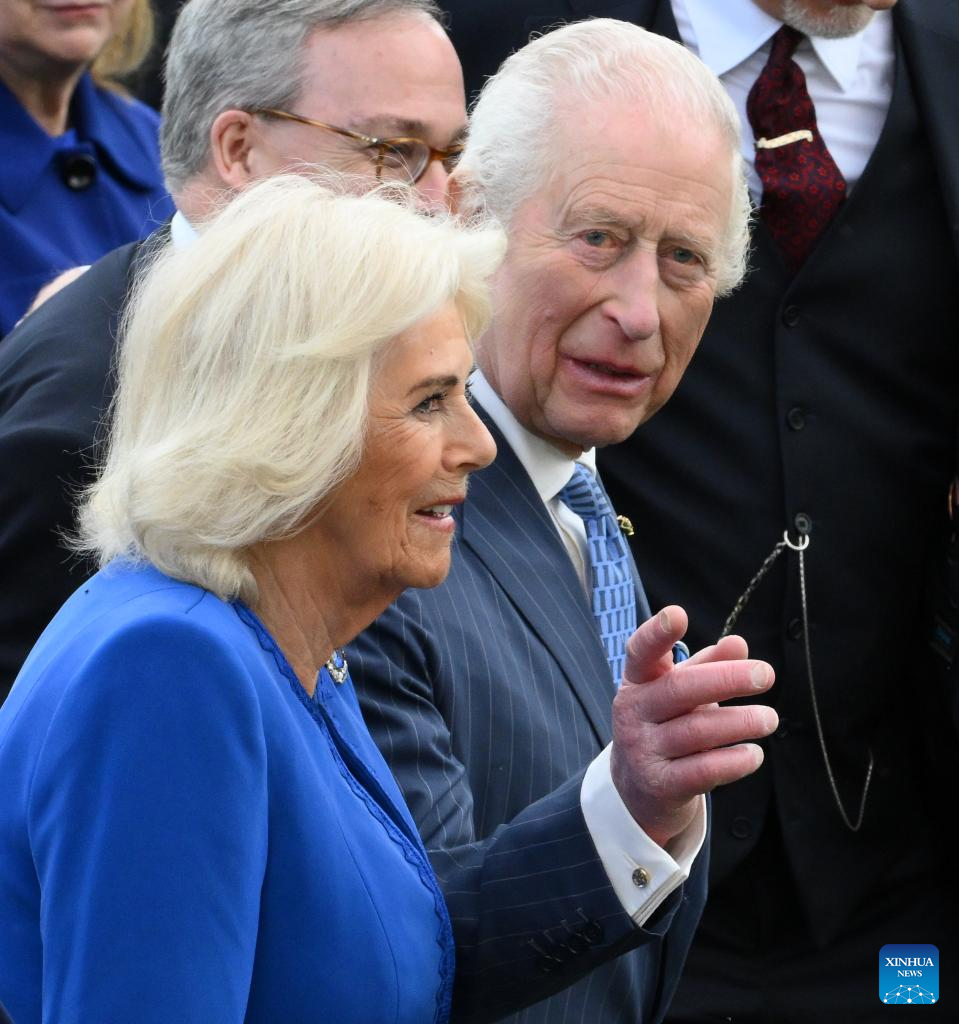 El rey Carlos III de Gran Bretaña y la reina Camila reaccionan durante una ceremonia de bienvenida en Roma, Italia, el 8 de abril de 2025. (Foto de Alberto Lingria/Xinhua.)