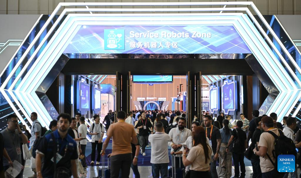 Las personas visitan la Zona de Robots de Servicio durante la 137.ª edición de la Feria de Cantón, el 15 de abril de 2025. (Xinhua/Deng Hua.)