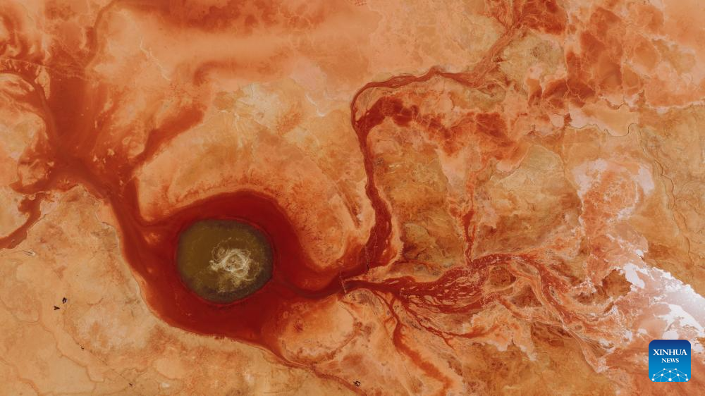 Vista aérea tomada con un dron el 19 de abril de 2025 del Manantial Aiken, en Mangya, en la prefectura autónoma mongola y tibetana de Haixi, en la provincia de Qinghai, en el noroeste de China. Ubicado en la provincia de Qinghai, en el noroeste de China, el Manantial Aiken es denominado el "Ojo de la Tierra". Esta rara maravilla geológica toma una única forma de pupila desde arriba, con agua de manantial y sedimentos rojos intensos a su alrededor que se asemejan a un ojo incrustado en la tierra. (Xinhua/Du Xiaowei)