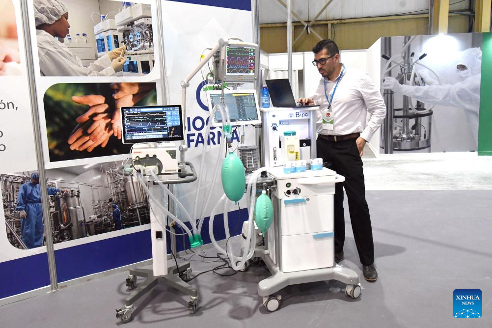 Imagen del 21 de abril de 2025 de un hombre manipulando un equipo médico en un estand de la XVI Feria Comercial Salud para Todos, que forma parte de la V Convención Internacional "Cuba Salud 2025", en el recinto ferial de Pabexpo, en La Habana, capital de Cuba. Cuba busca expandir la cooperación con China en materia biotecnológica, aseguró la presidenta del estatal grupo empresarial BioCubaFarma, Mayda Mauri. (Xinhua/Joaquín Hernández)