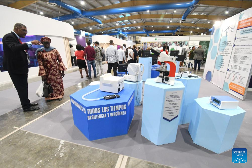 Imagen del 21 de abril de 2025 de personas observando productos médicos exhibidos en la XVI Feria Comercial Salud para Todos, que forma parte de la V Convención Internacional "Cuba Salud 2025", en el recinto ferial de Pabexpo, en La Habana, capital de Cuba. Cuba busca expandir la cooperación con China en materia biotecnológica, aseguró la presidenta del estatal grupo empresarial BioCubaFarma, Mayda Mauri. (Xinhua/Joaquín Hernández)