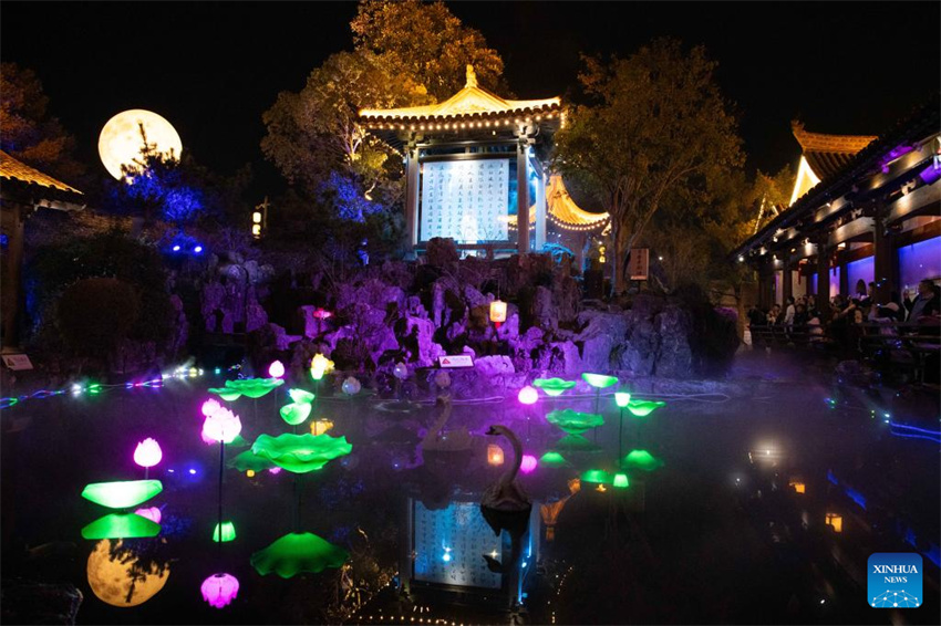 Visitantes observan una actuación inmersiva en vivo en la antigua ciudad de Huizhou, en el distrito de Shexian de la ciudad de Huangshan, provincia oriental china de Anhui, el 23 de marzo de 2025. (Xinhua/Zhang Duan.)