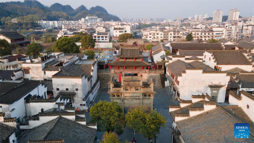 Una foto tomada con un dron muestra la antigua ciudad de Huizhou, en el distrito de Shexian de la ciudad de Huangshan, provincia oriental china de Anhui, el 26 de marzo de 2025. (Xinhua/Zhang Duan.)