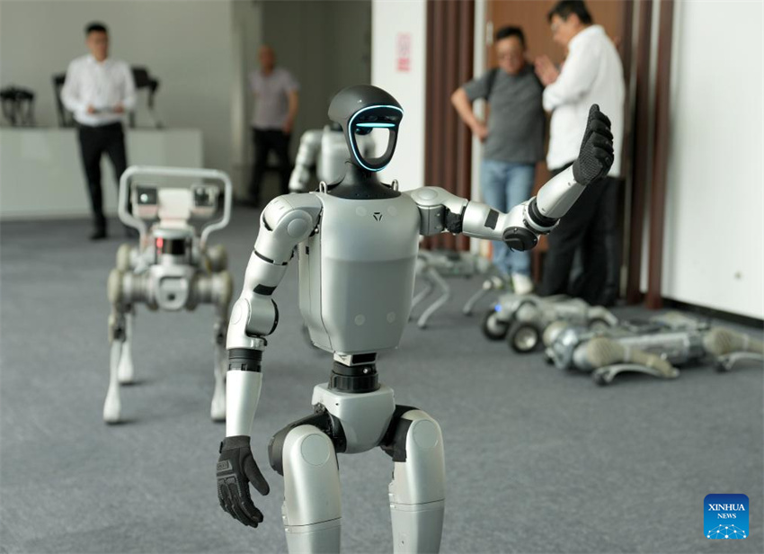 Un robot humanoide Unitree G1 lanza un beso en una sala de exposiciones de Unitree Robotics en Hangzhou, provincia de Zhejiang, este de China, el 23 de abril de 2025. (Xinhua/Han Chuanhao.)