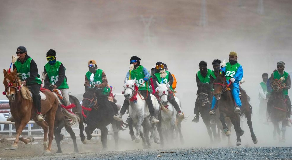 Imagen del 26 de abril de 2025 de jinetes compitiendo durante un evento de carreras de caballos por invitación, en el distrito de Damxung, en la región autónoma de Xizang, en el suroeste de China. El evento se celebra del 23 al 28 de abril en el hipódromo del distrito de Damxung con la participación de 403 caballos, que participarán en 12 competiciones entre carreras de resistencia y velocidad. (Xinhua/Jigme Dorje)