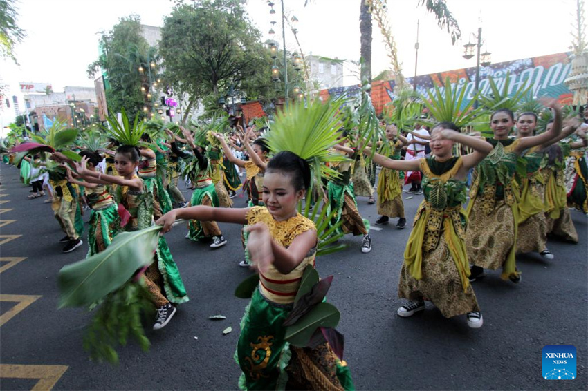 Bailarinas participan en el Festival de Danza Solo 2025 para celebrar el Día Internacional de la Danza, en Surakarta, Java Central, Indonesia, el 29 de abril de 2025. (Fotografía de Bram Selo/Xinhua.)