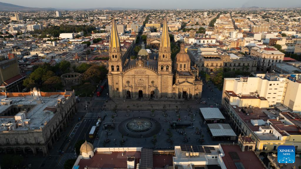 Vista aérea tomada con un dron del 8 de mayo de 2025 del centro histórico de Guadalajara, estado de Jalisco, México. Guadalajara, la segunda ciudad más grande de México, es un centro económico clave y conserva un rico patrimonio cultural. (Xinhua/Li Mengxin)