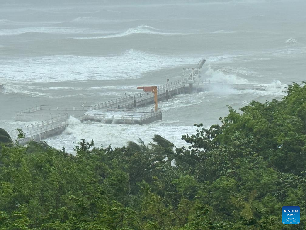 Fuertes vientos y olas son vistas en el área marítima de Dadonghai, en Sanya, en la provincia de Hainan, en el sur de China, el 13 de junio de 2025. A medida que el tifón Wutip continuaba fortaleciéndose, el servicio meteorológico provincial mantuvo una alerta de tifón de nivel III hasta las 11:00 horas del viernes. (Xinhua/Zhao Yingquan)