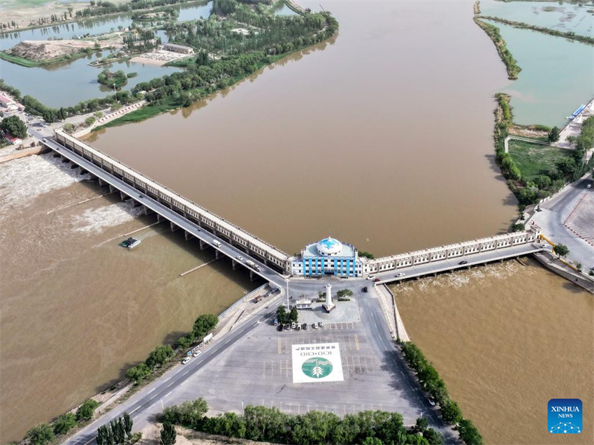 Una foto aérea tomada por un dron el 28 de mayo de 2025 muestra el Proyecto de Control del Agua de Sanshenggong en el distrito de Dengkou de Bayannur, región autónoma de Mongolia Interior, en el norte de China. (Xinhua/Ma Jinrui.)