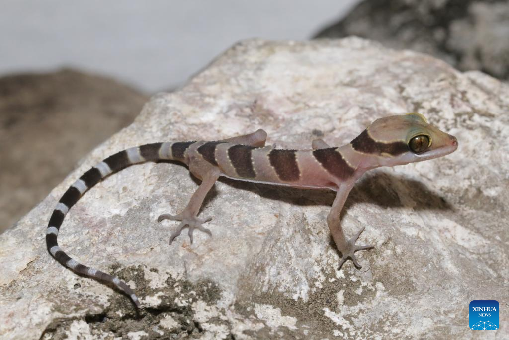 Esta foto tomada el 20 de marzo de 2024 muestra un geco de dedos doblados Kamping Poi en la provincia de Battambang, Camboya. (Fauna & Flora's Cambodia Program/Handout via Xinhua.)