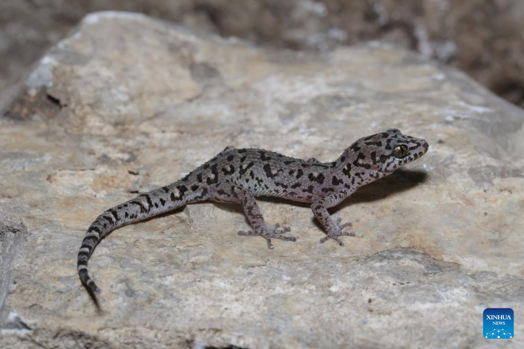 Esta foto tomada el 21 de marzo de 2024 muestra un geco de Battambang en la provincia de Battambang, Camboya. (Fauna & Flora's Cambodia Program/Handout via Xinhua.)