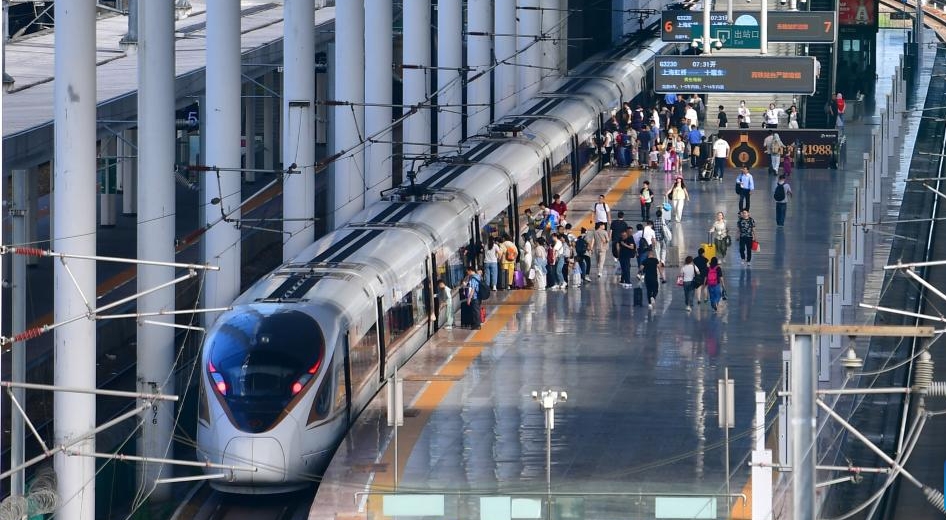 Pasajeros esperan por trenes en la Estación del Ferrocarril del Oeste de Tianjin, en la municipalidad de Tianjin, en el norte de China, el 1 de julio de 2025. Un nuevo horario de trenes entró en vigor en China el 1 de julio de 2025, comenzando la temporada de viajes de verano de 62 días de este año, de acuerdo con el operador ferroviario. (Xinhua/Li Ran)