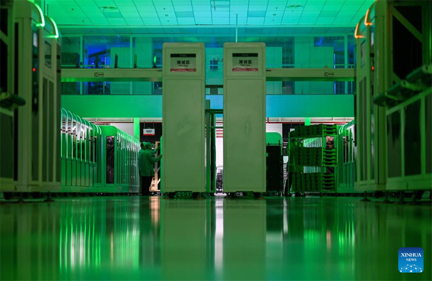 Esta foto tomada el 4 de julio de 2025 muestra la zona de pruebas de portátiles de la fábrica de producción inteligente neutra en carbono de Lenovo, en la ciudad septentrional china de Tianjin. (Xinhua/Zhao Zishuo.)