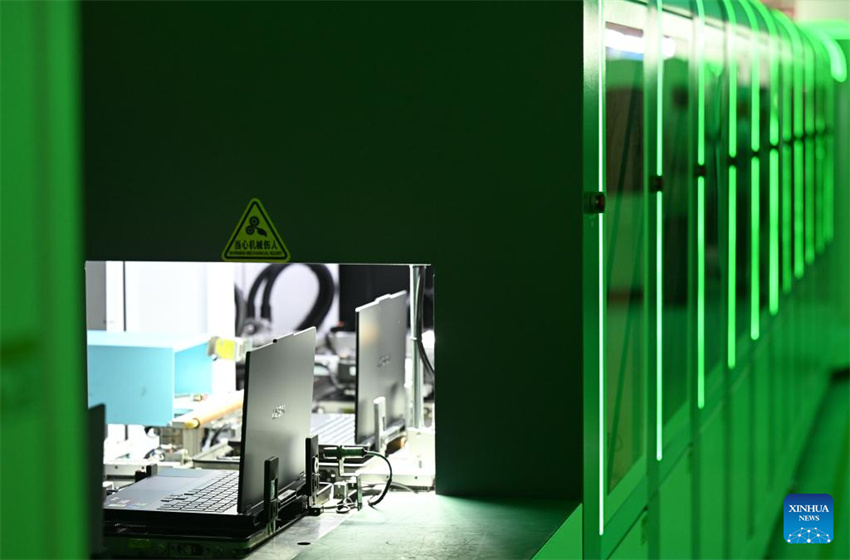 Esta foto tomada el 4 de julio de 2025 muestra la zona de pruebas de portátiles de la fábrica de producción inteligente neutra en carbono de Lenovo, en la ciudad septentrional china de Tianjin. (Xinhua/Zhao Zishuo.)
