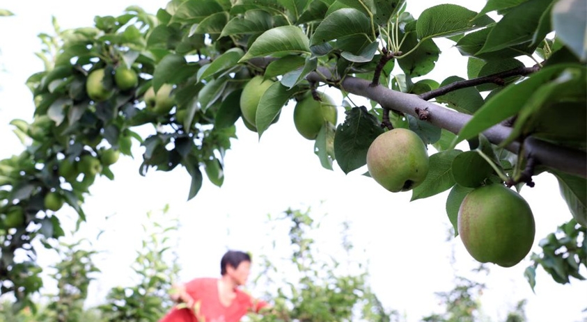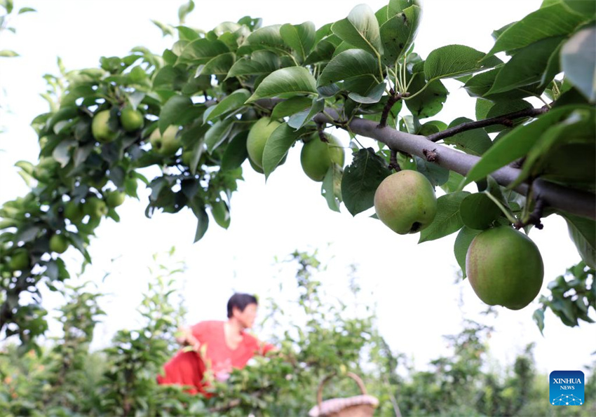 Agricultoras cosechan peras en el distrito de Zhaoxian, Hebei