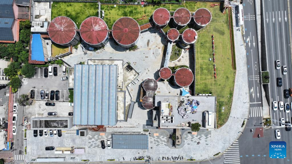Vista aérea tomada con un dron de un depósito de petróleo obsoleto, en Changsha, en la provincia de Hunan, en el centro de China, el 13 de julio de 2025. En el distrito de Tianxin de la ciudad de Changsha, se alzan doce tanques de petróleo desgastados a lo largo del río Xiangjiang. Este sitio sirvió antiguamente como depósito de petróleo para la ciudad, testigo de una época en la que los ciudadanos obtenían aceite comestible con cupones de racionamiento. La instalación permaneció prácticamente sin uso desde la década de 1990. En julio de este año se reabrió este patrimonio industrial, con tanques de petróleo e instalaciones auxiliares transformados en vibrantes cafeterías, salas de exposiciones, tiendas de arte, entre otros, que combinan diseño industrial y diversas experiencias de consumo que atraen tanto a residentes como a turistas. (Xinhua/Chen Zhenhai)