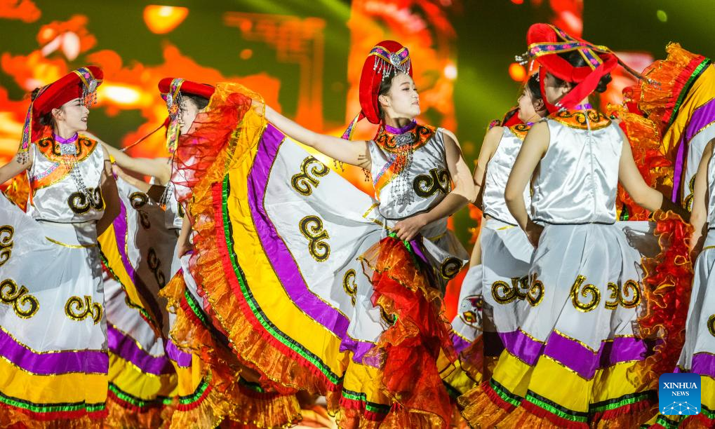 Imagen del 18 de julio de 2025 de artistas realizando una presentación en la celebración del Festival de la Antorcha del grupo étnico yi, en el distrito de Shuicheng de Liupanshui, en la provincia de Guizhou, en el suroeste de China. Las celebraciones del Festival de la Antorcha del grupo étnico yi comenzaron el viernes en un complejo turístico del distrito de Shuicheng de Liupanshui, atrayendo a turistas de todo el país. Una serie de actividades relacionadas también tendrán lugar aquí el 17 de agosto o antes. (Xinhua/Tao Liang)