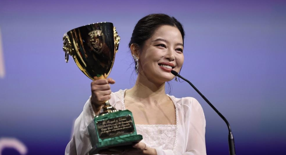 Por su brillante actuación de una mujer atrapada en un triángulo amoroso en “The Sun Rises on Us All” (El sol sale para todos nosotros), la intérprete se hizo con la Copa Volpi de manos de Zhao Tao, otra famosa actriz china miembro del jurado internacional de este año.