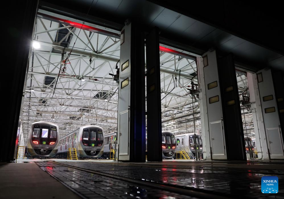 Trenes del metro fotografiados antes de entrar en funcionamiento en Shijiazhuang, provincia de Hebei, en el norte de China, el 9 de septiembre de 2025. (Xinhua/Yang Shiyao.)