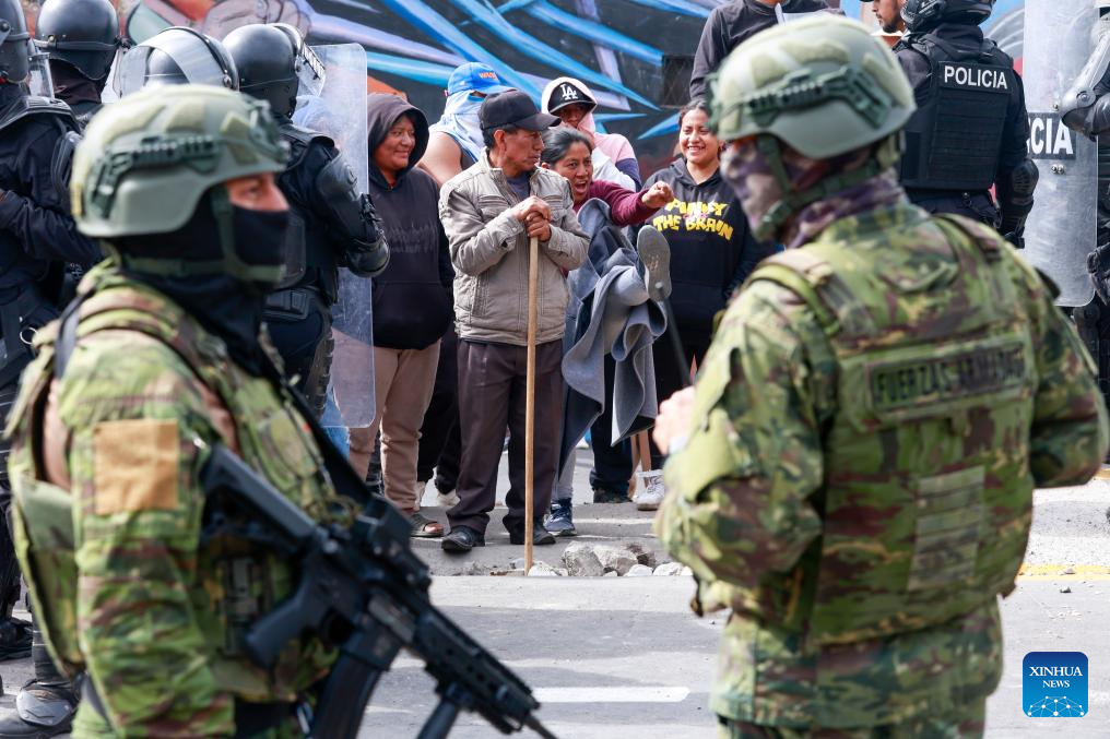 Manifestantes participan durante una protesta por la eliminación del subsidio al diésel, en Quito, capital de Ecuador, el 16 de septiembre de 2025. El presidente de Ecuador, Daniel Noboa, decretó el martes estado de excepción por 60 días en siete provincias del país por "grave conmoción interna", derivada de las protestas y bloqueos de carreteras iniciados la víspera por gremios de transportistas en rechazo a la reciente eliminación del subsidio al diésel. (Xinhua/Ricardo Landeta)