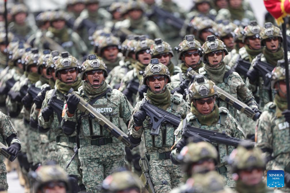 Elementos del Ejército mexicano participan en el Desfile Cívico Militar en conmemoración del 215 aniversario de la Independencia de México, en la Ciudad de México, capital de México, el 16 de septiembre de 2025. México celebró el martes el aniversario 215 del inicio de la lucha independentista contra el colonialismo español con la realización del tradicional Desfile Cívico Militar en la Ciudad de México, con la particularidad de que por primera ocasión se presentaron honores y se rindió el parte de novedades a una mujer, Claudia Sheinbaum, primera presidenta y comandanta suprema de las Fuerzas Armadas del país latinoamericano. (Xinhua/Francisco Cañedo)