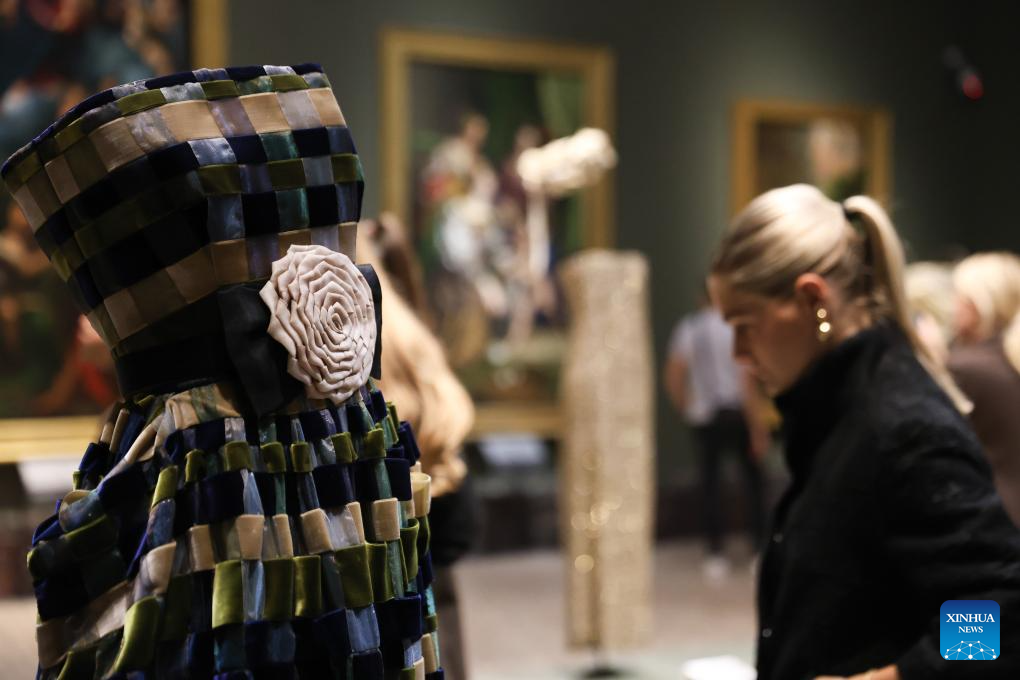 Imagen del 25 de septiembre de 2025 de una creación exhibida en la exposición "Giorgio Armani: Milano, per amore" en la Pinacoteca de Brera, en Milán, Italia. Más de 120 creaciones de Armani/Archivio son exhibidas entre las pinturas de la Pinacoteca de Brera desde el 24 de septiembre de 2025 hasta el 11 de enero de 2026, para honrar la trayectoria estilística del diseñador de moda italiano Giorgio Armani, fallecido el 4 de septiembre de 2025. (Xinhua/Li Jing)