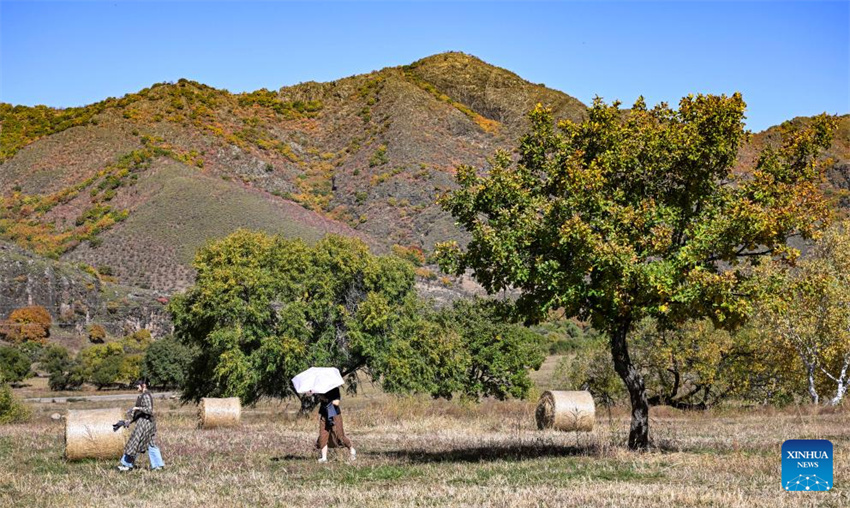 Turistas pasean por un paisaje de la Bandera Frontal del Ala Derecha de Horqin, Liga Hinggan, en la región autónoma de Mongolia Interior, norte de China, el 28 de septiembre de 2025 (Xinhua/Bei He).