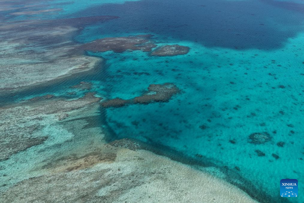 Una foto aérea tomada con un dron el 2 de octubre de 2025 muestra una vista de la reserva natural nacional china de Huangyan Dao, en el Mar Meridional de China. (Xinhua).
