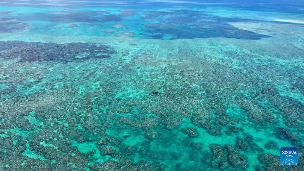 Una foto aérea tomada con un dron el 2 de octubre de 2025 muestra una vista de la reserva natural nacional china de Huangyan Dao, en el Mar Meridional de China. (Xinhua).