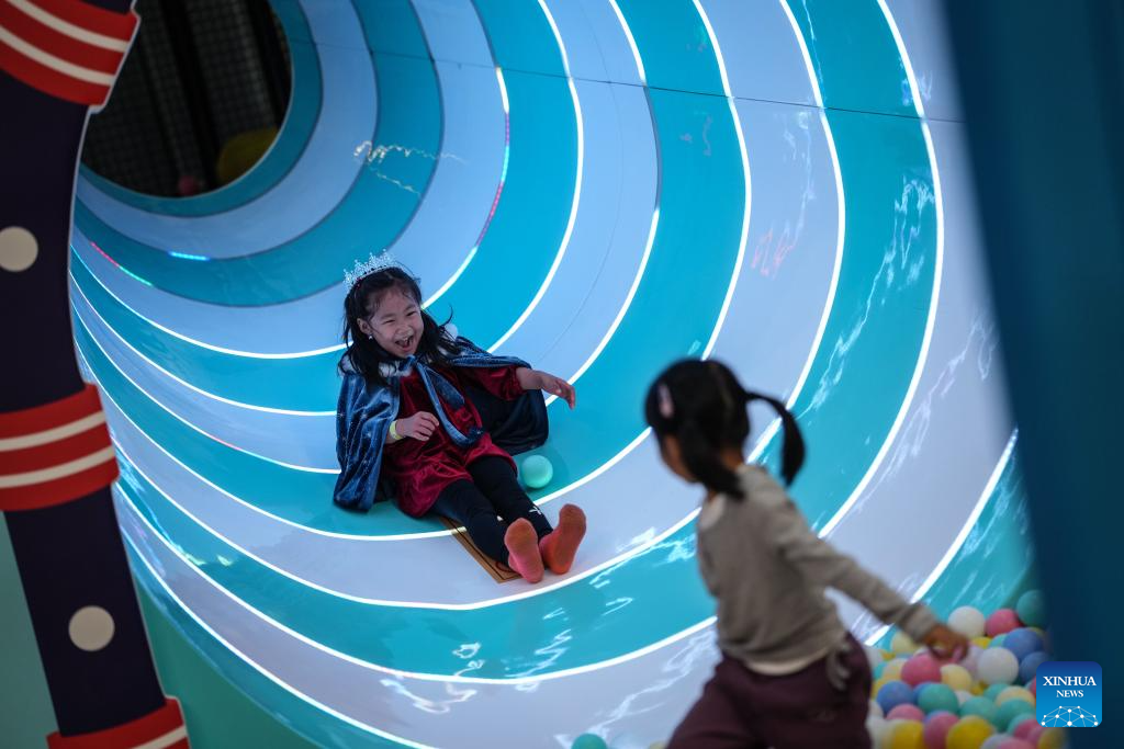 Niñas se divierten en un espacio cultural y creativo, transformado a partir de un granero, en Shenyang, provincia de Liaoning, noreste de China, el 8 de octubre de 2025. (Xinhua/Pan Yulong).