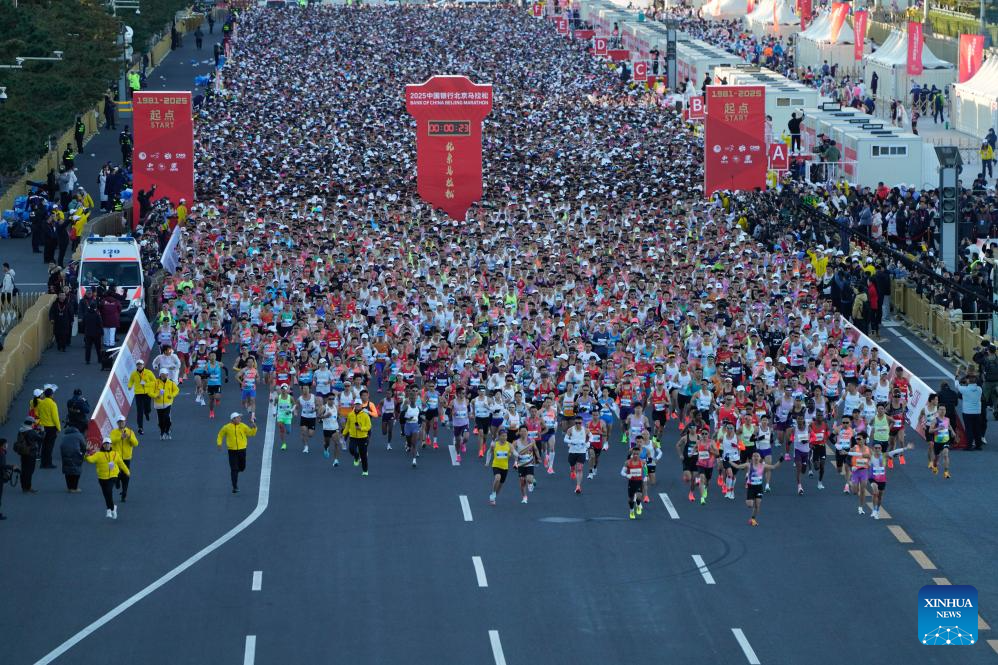 Participantes inician el Maratón de Beijing 2025, en Beijing, capital de China, el 2 de noviembre de 2025. (Xinhua/Xie Han)