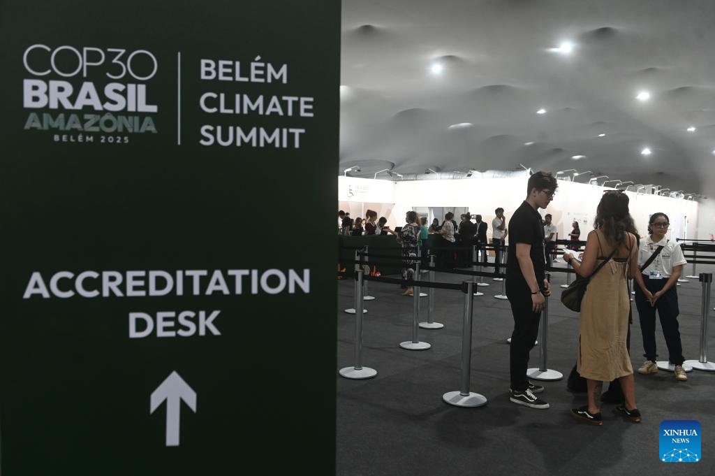 Personas se reúnen en la zona de acreditación de la 30ª Conferencia de las Partes (COP30) de la Convención Marco de las Naciones Unidas sobre el Cambio Climático, en Belém, estado de Pará, Brasil, el 4 de noviembre de 2025. El presidente de Brasil, Luiz Inácio Lula da Silva, sancionó el martes el proyecto de ley que autoriza la transferencia temporal de la capital federal de Brasilia a la ciudad de Belém. La medida estará vigente del 11 al 21 de noviembre de 2025, periodo en el que Belém será sede de la COP30. (Xinhua/Lucio Tavora)