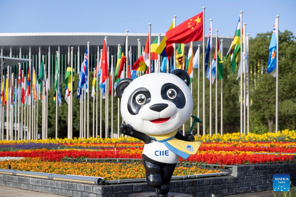 Imagen del 10 de noviembre de 2025 de Jinbao, la mascota de la VIII Exposición Internacional de Importaciones de China (CIIE, por sus siglas en inglés), en la plaza sur del Centro Nacional de Exposiciones y Convenciones (Shanghai), la sede principal de la VIII CIIE, en Shanghai, en el este de China. La VIII CIIE concluyó aquí el lunes. (Xinhua/Wang Xiang)