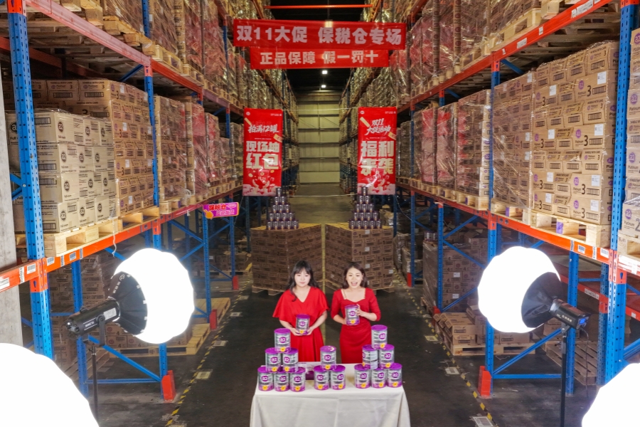 El lunes, víspera del “Día de los Solteros”, hubo una promoción en directo en un almacén de la zona franca integral de Jinyi, en la provincia de Zhejiang. DIARIO DE CHINA
