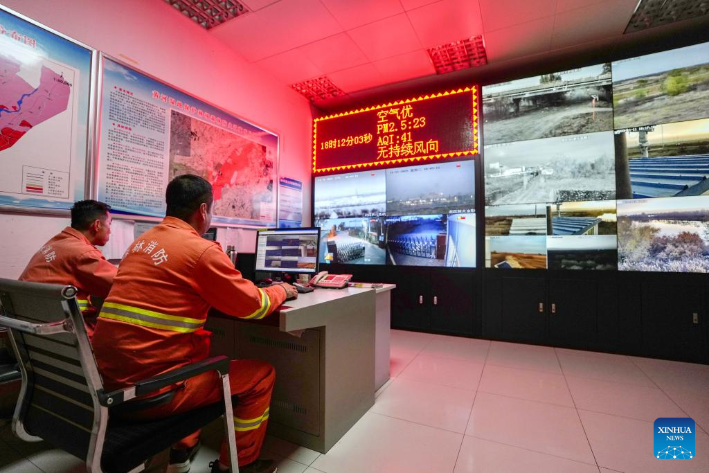 Miembros del personal operan una plataforma de monitoreo inteligente en el Parque Nacional de Humedales Tianhewan en el distrito de Pingluo de Shizuishan, en la región autónoma de la etnia Hui de Ningxia, el 11 de noviembre de 2025. (Xinhua/Yang Zhisen).