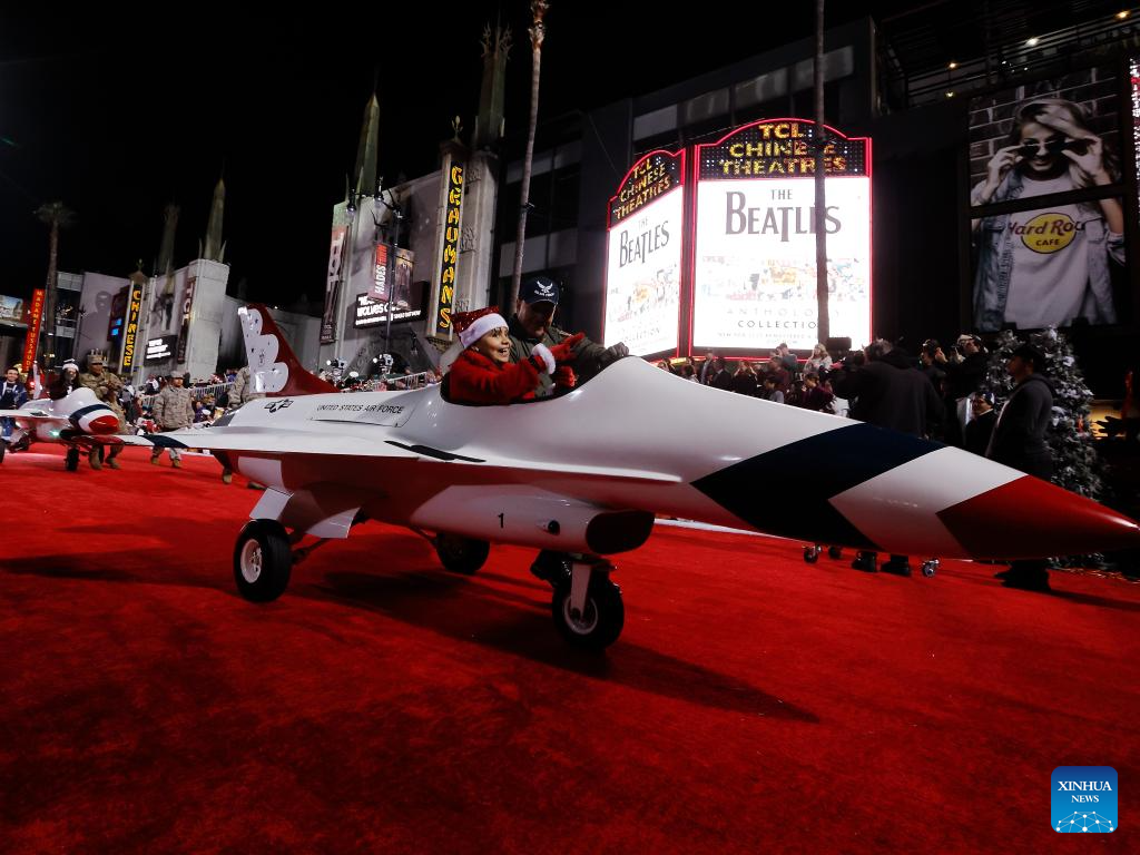 Imagen del 30 de noviembre de 2025 de participantes marchando por el Bulevar Hollywood durante el 93° Desfile Anual Navideño de Hollywood, en Los Angeles, California, Estados Unidos. (Xinhua/Qiu Chen)