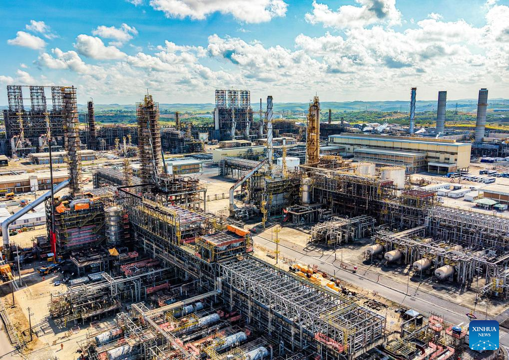 Vista aérea proveída por el Palacio de Planalto de la refinería Abreu e Lima durante la ceremonia de inauguración de su ampliación, en Ipojuca, en el estado de Pernambuco, Brasil, el 2 de diciembre de 2025. El presidente de Brasil, Luiz Inácio Lula da Silva, abogó el martes por una mayor inversión en la transición energética realizada con fondos de la industria petrolera, al inaugurar la ampliación de una refinería de la compañía estatal Petrobras, en el estado de Pernambuco. (Xinhua/Ricardo Stuckert/Palacio de Planalto)