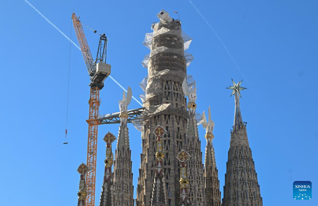 Imagen del 1 de diciembre de 2025 de la basílica de la Sagrada Familia en construcción, en Barcelona, España. La basílica de la Sagrada Familia, obra maestra del diseñador de renombre mundial, Antoni Gaudí, sigue en construcción desde que se colocó la primera piedra en 1882. (Xinhua/Cheng Min)