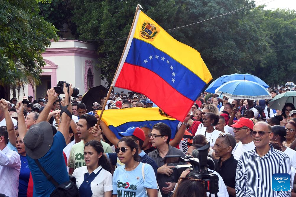 Imagen del 6 de diciembre de 2025 de personas participando en una concentración realizada en el contexto de la jornada mundial de solidaridad con Venezuela frente a la sede del Instituto Cubano de Amistad con los Pueblos, en La Habana, capital de Cuba. Cientos de cubanos ratificaron el sábado durante una movilización en La Habana su solidaridad con Venezuela ante las agresiones de Estados Unidos contra la nación sudamericana. (Xinhua/Joaquín Hernández)