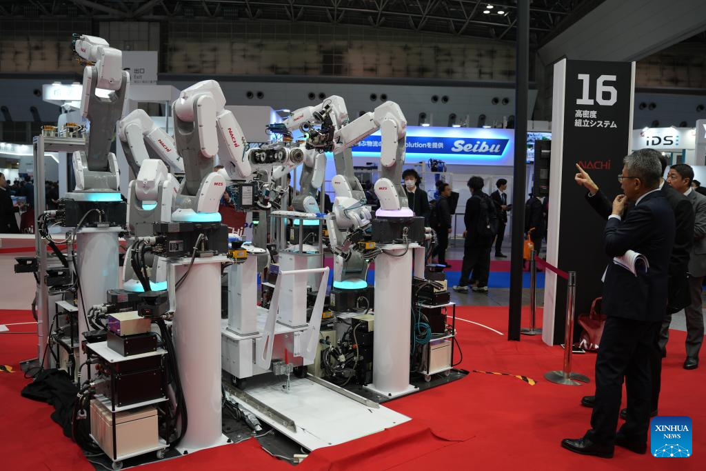 Imagen del 5 de diciembre de 2025 de personas aprendiendo sobre nuevos robots industriales en el área de exposición de Nachi durante la Exposición Internacional de Robots 2025 (iREX, por sus siglas en inglés), en Tokio, Japón. La iREX 2025, de cuatro días de duración, concluyó aquí el sábado, con la participación de más de 670 expositores procedentes de Japón, China, República de Corea, Estados Unidos, Alemania y otros países y regiones. Los nuevos robots industriales, robots de servicio, robots de suministro de comidas y bebidas y robots de compañía que integran tecnología de inteligencia artificial atrajeron una gran atención. (Xinhua/Qian Zheng)