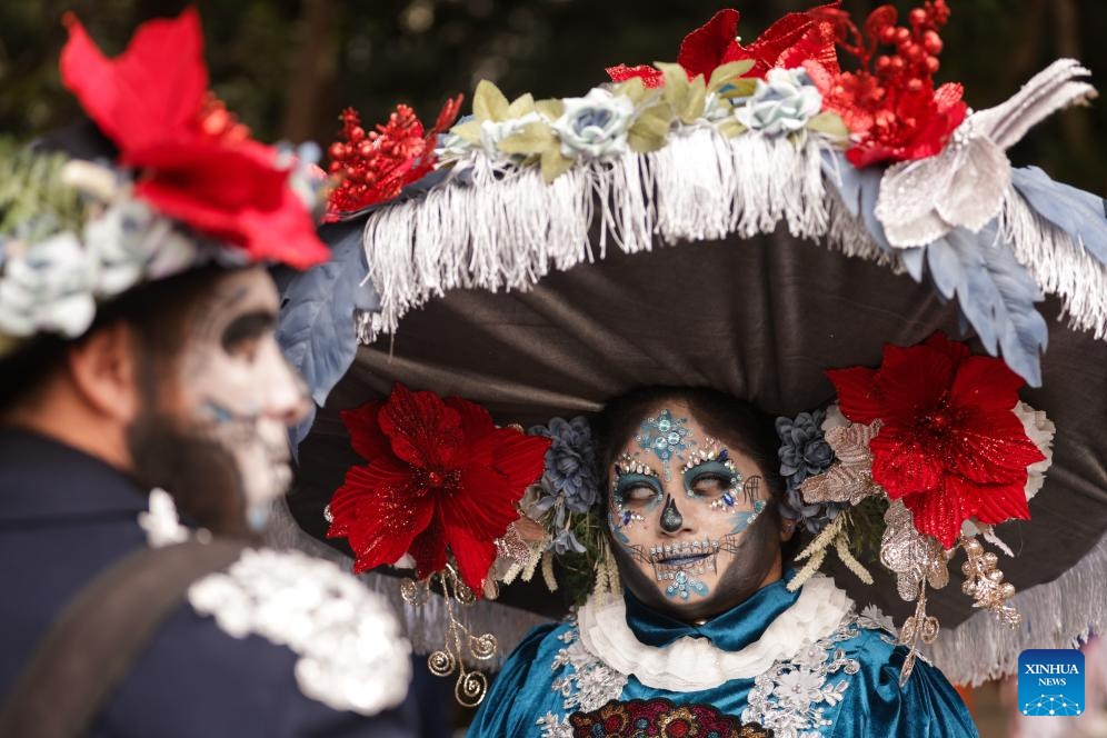 Artistas disfrazados son fotografiados durante el Carnaval de Villa-Zapata en la Ciudad de México, el 6 de diciembre de 2025. (Foto de Francisco Cañedo/Xinhua).