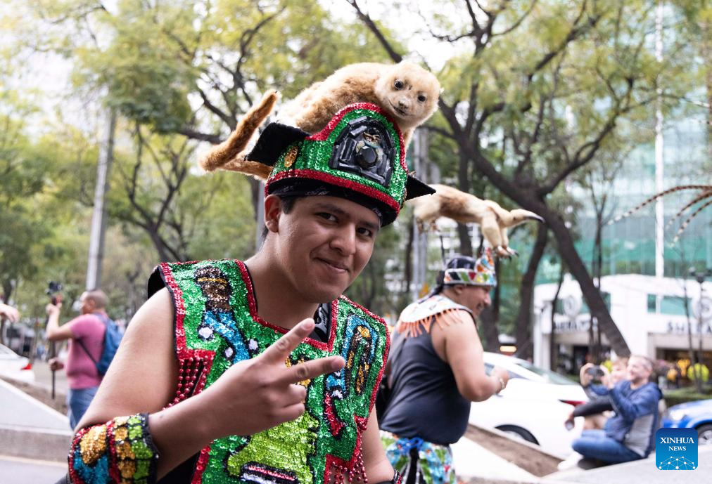 Un artista disfrazado es fotografiado durante el Carnaval Villa-Zapata en la Ciudad de México, el 6 de diciembre de 2025. (Xinhua/Li Mengxin).