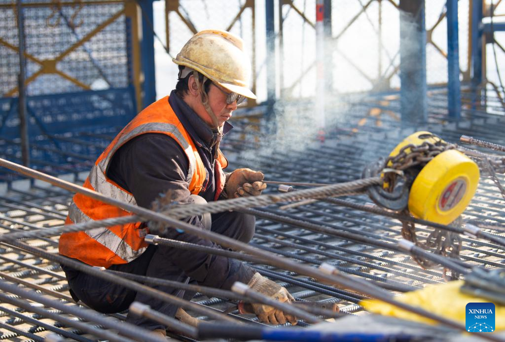 Esta foto tomada el 7 de diciembre de 2025 muestra a un trabajador en la obra del gran puente Renhe, a lo largo de la línea ferroviaria de alta velocidad Xi'an-Chongqing, en Chongqing, suroeste de China. (Xinhua/Tang Yi).